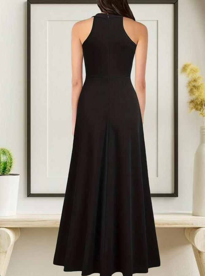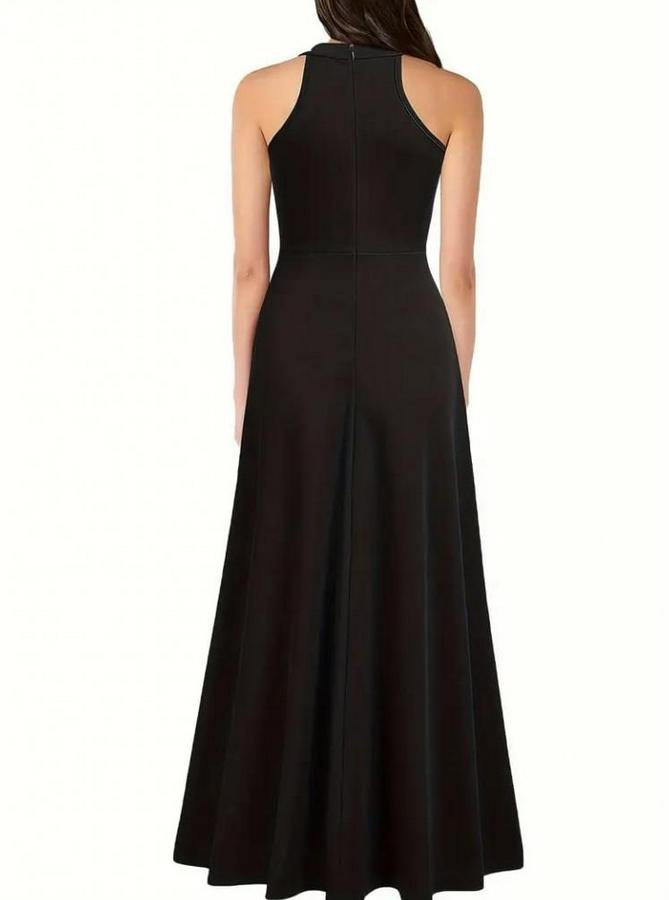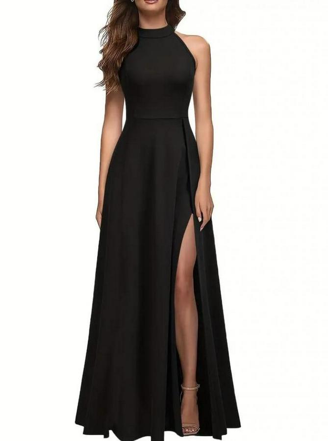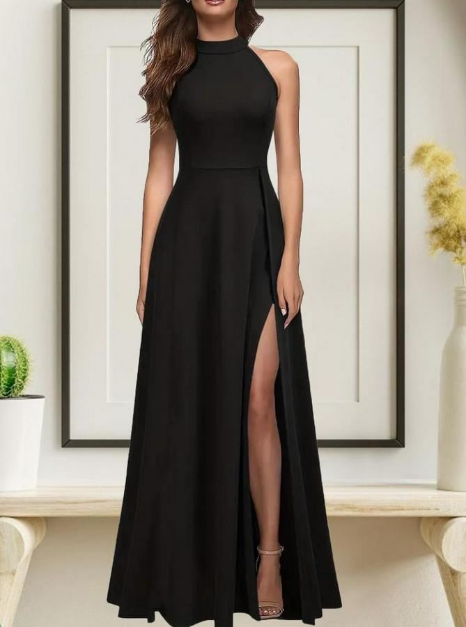 Kadın Halter Yaka Derin Yırtmaç Detaylı Tam Boy Ithal Krep Abiye Elbise