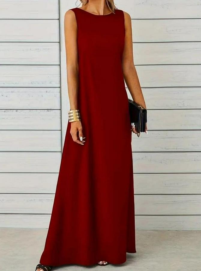 Kadın Kolsuz Kayık Yaka Maksi Janjan Krep Elbise