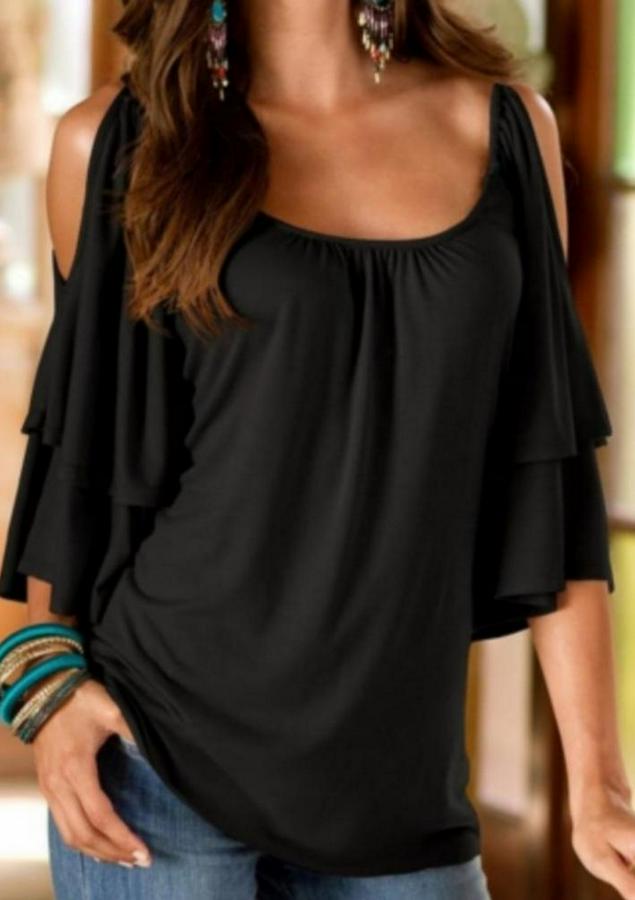 Omuz Detay Kolları Katmanlı Viskon Kumaş Bluz