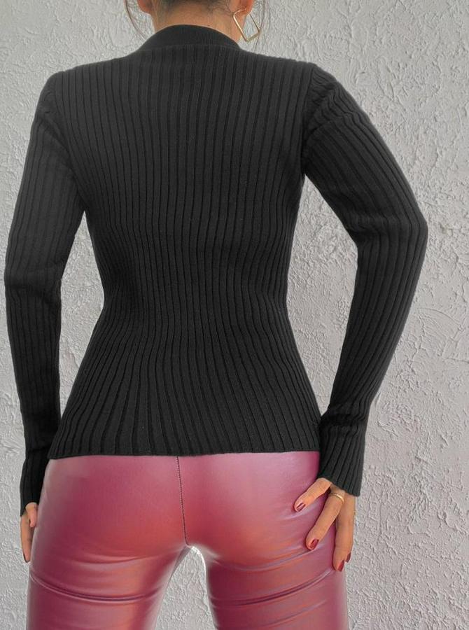 Kadın Siyah Polo Yaka Parmak Detay Triko Bluz 2047
