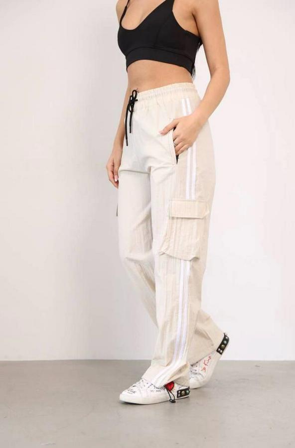Praşut Kumaş Kargo Çeplı Baggy Esofman - Bej