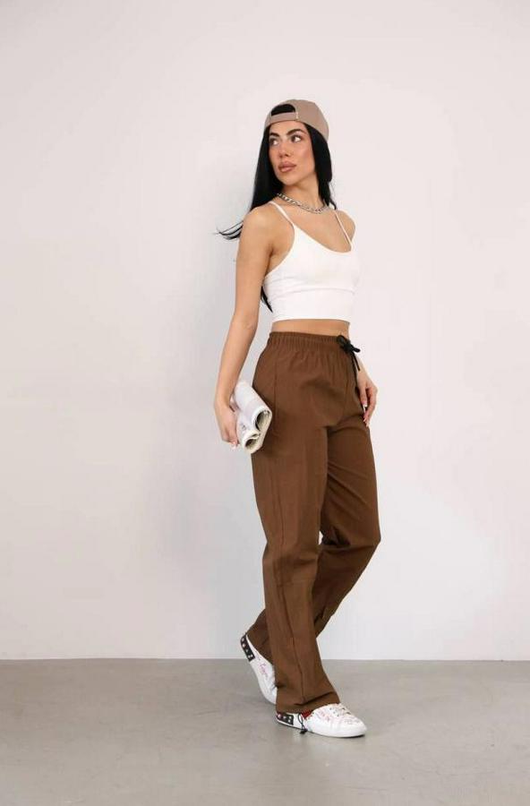 Praşut Kumaş Paça Cepli Baggy Eşofman - Kahve