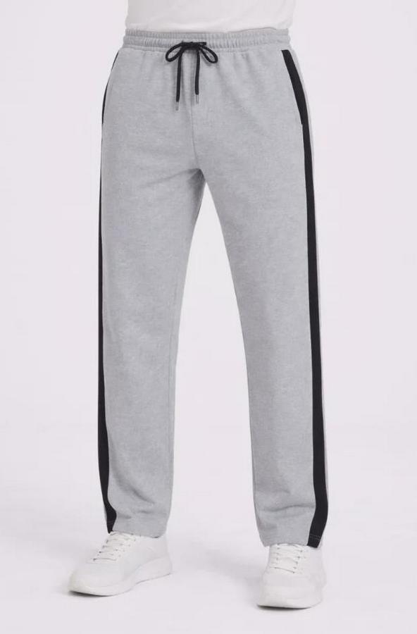 Erkek Yandan Şeritli Boru Paça Eşofman Altı 3 Iplik Pamuklu Eşofman - Gri