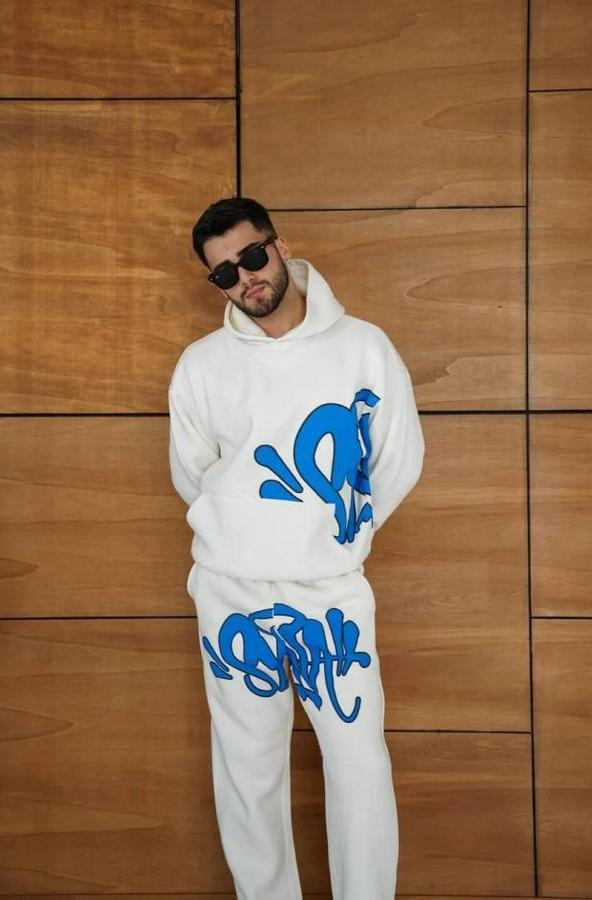 Erkek Kapüşonlu Eşofman Takım Graffiti Baskılı Oversize Rahat Kalıp, Kanguru Cepli, Streetwear Tarzında Premium Ürün 3 Iplik Pamuklu - Beyaz