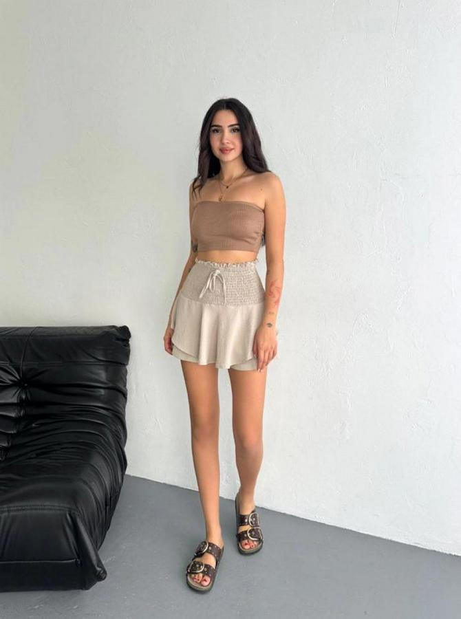 Ayrobin Şortlu Etek - Bej