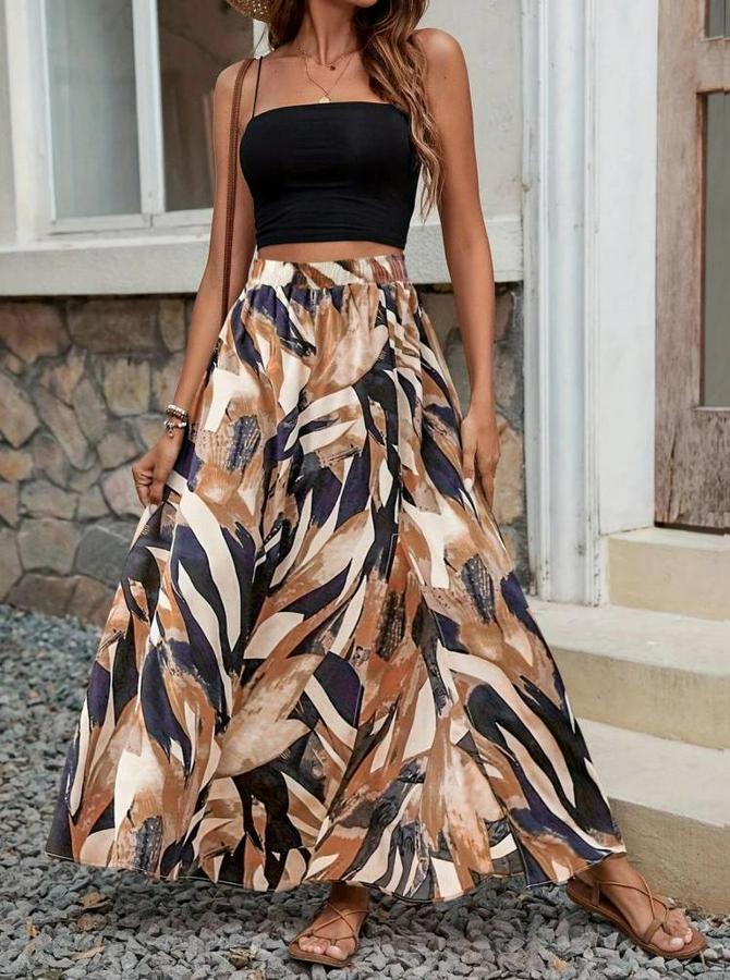 Kadın Beli Büzgülü Yandan Yırtmaçlı Desenli Süprem Etek