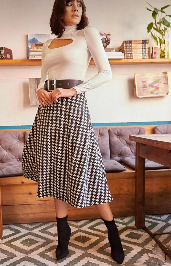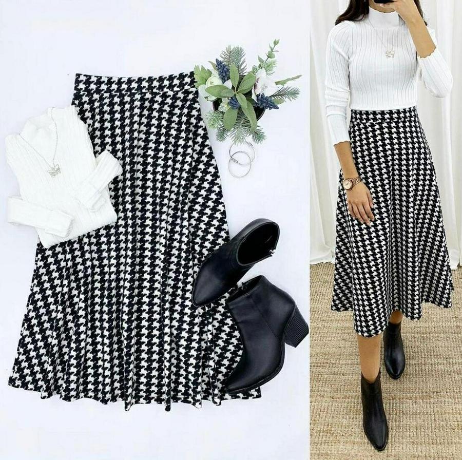 Beli Lastikli Kazayağı Desen Süet Scuba Etek.