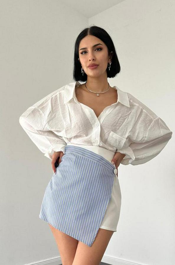 AnasayfaTüm ÜrünlerAlt GiyimEtekBeyaz Çizgili Etek Şort