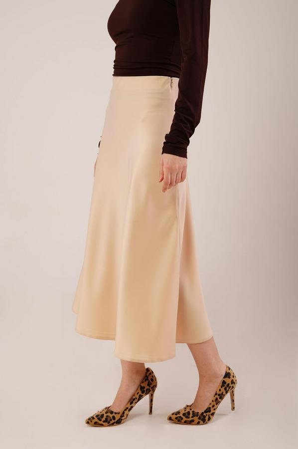 AnasayfaTüm ÜrünlerÜst GiyimBluz & TunikBluzÇan Kesim Midi Krem Saten Etek
