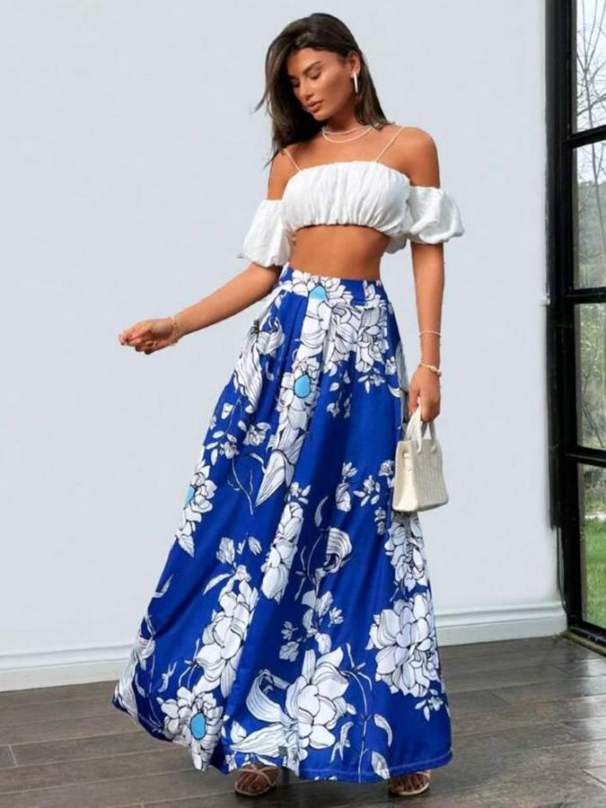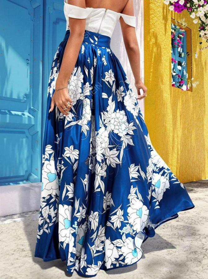 Çiçek Baskılı Maxi Boy Süprem Etek