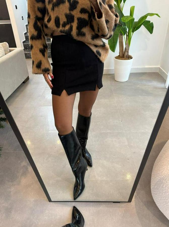 Çift Yırtmaç Detaylı Mını Etek