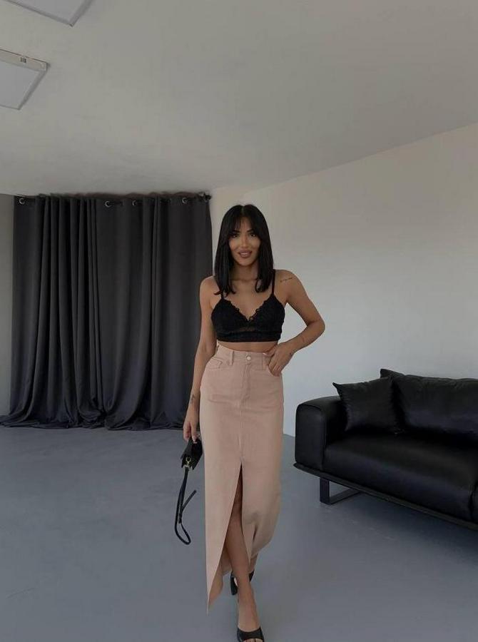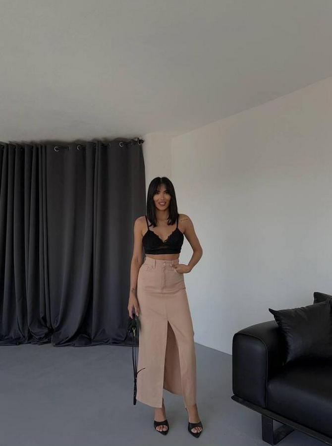 Gabardin Uzun Önden Yirtmaçli Etek