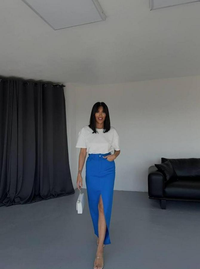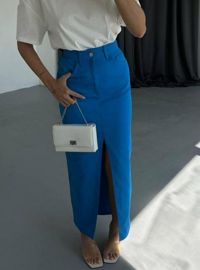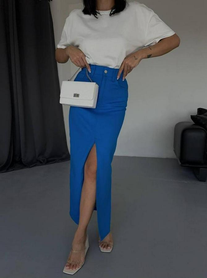 GABARDİN UZUN ÖNDEN YIRTMAÇLI ETEK - Saks