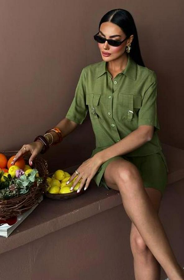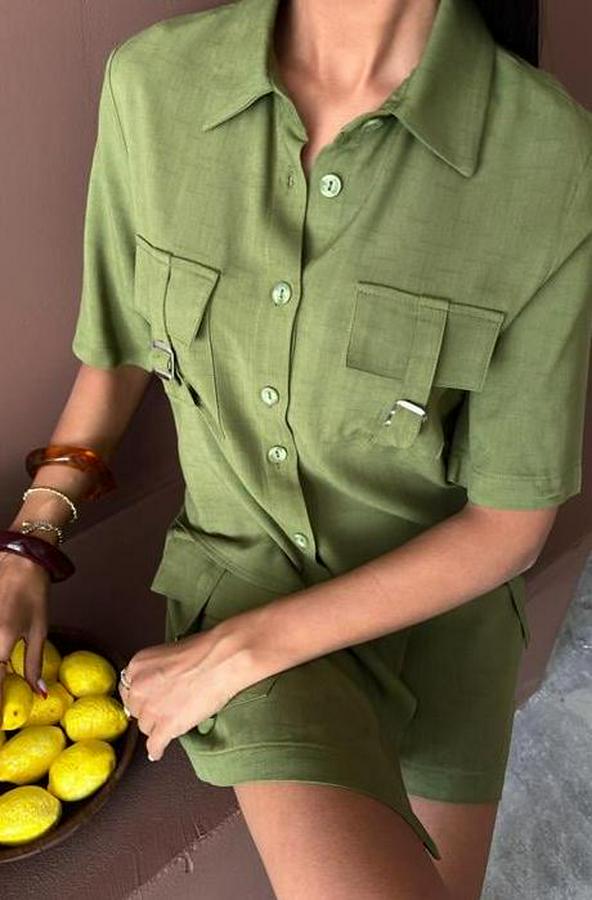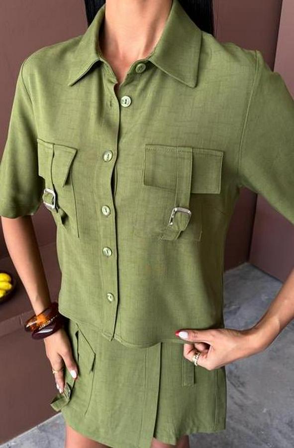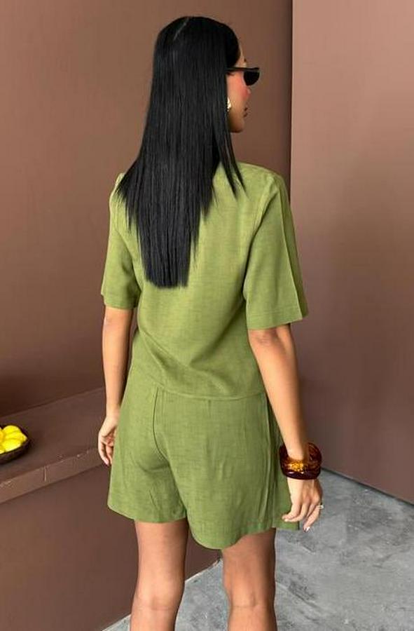 Gömlek Şort Etek Viscon Keten Takım 10162