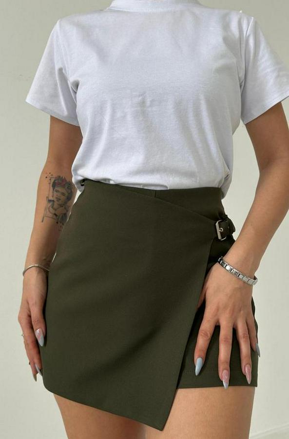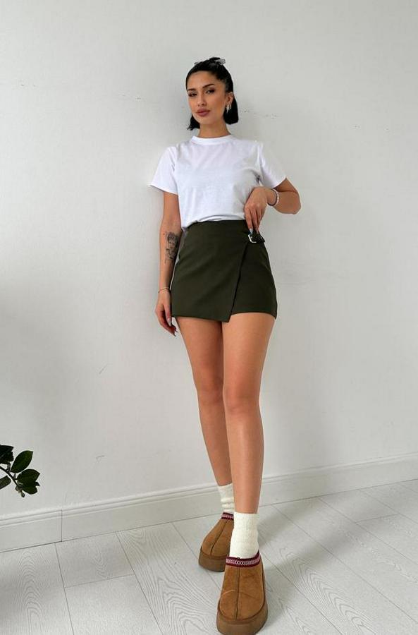 AnasayfaTüm ÜrünlerAlt GiyimEtekHaki Tokalı Şortlu Etek