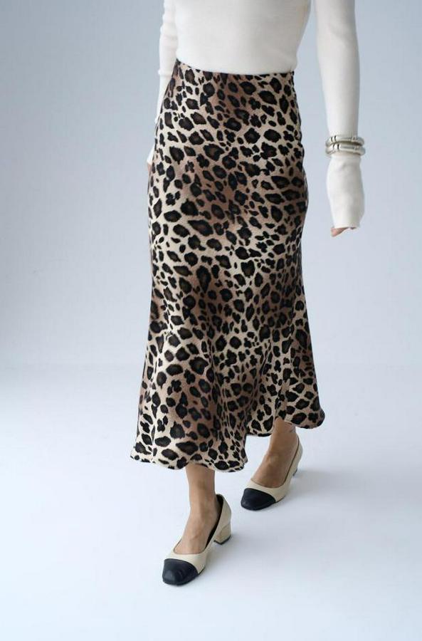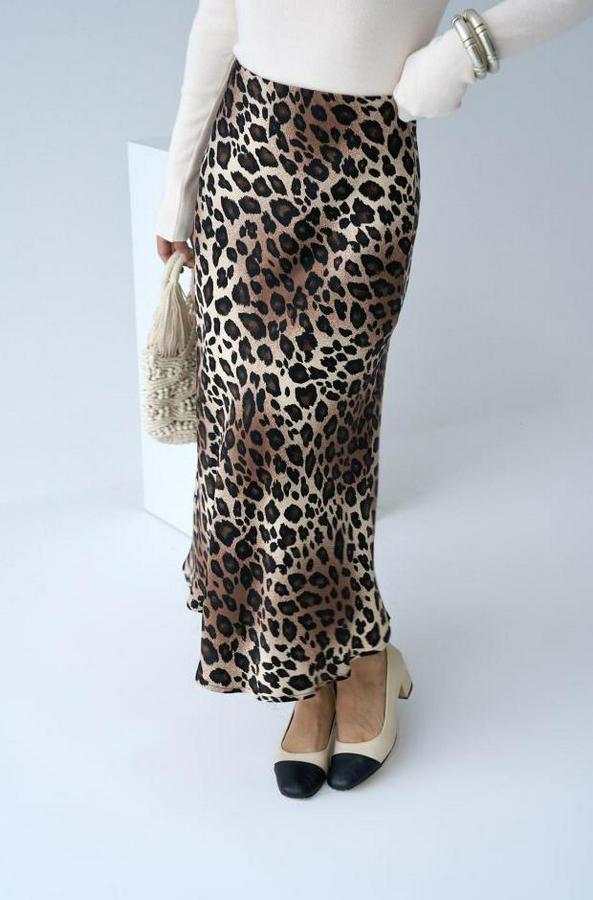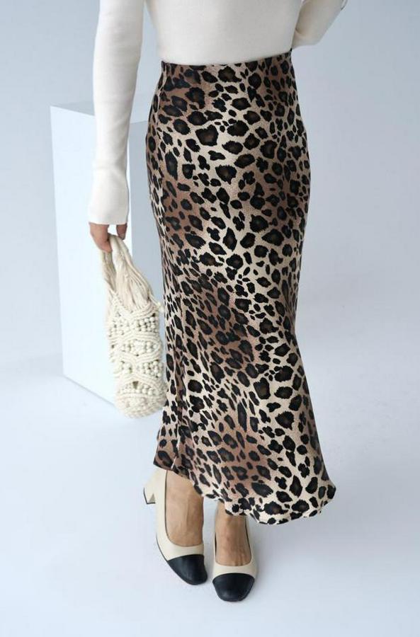 Midi Saten Etek - Leopar