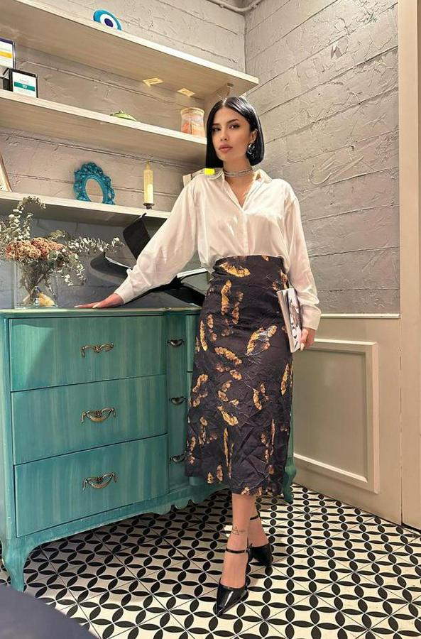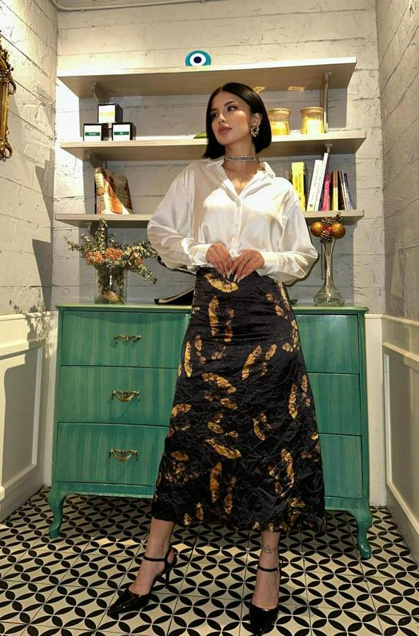 Siyah Baskılı Kroşetalı Etek