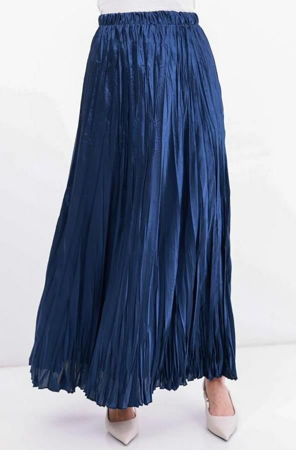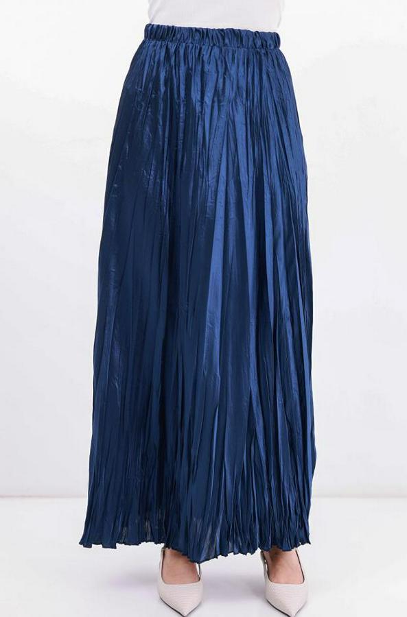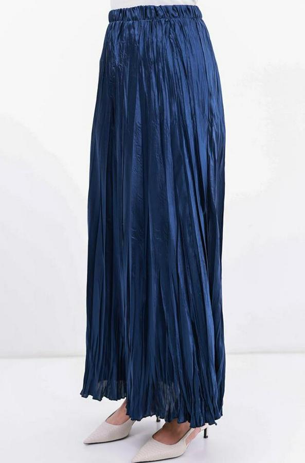 Uzun Kırışık Etek 8034 - D.Lacivert