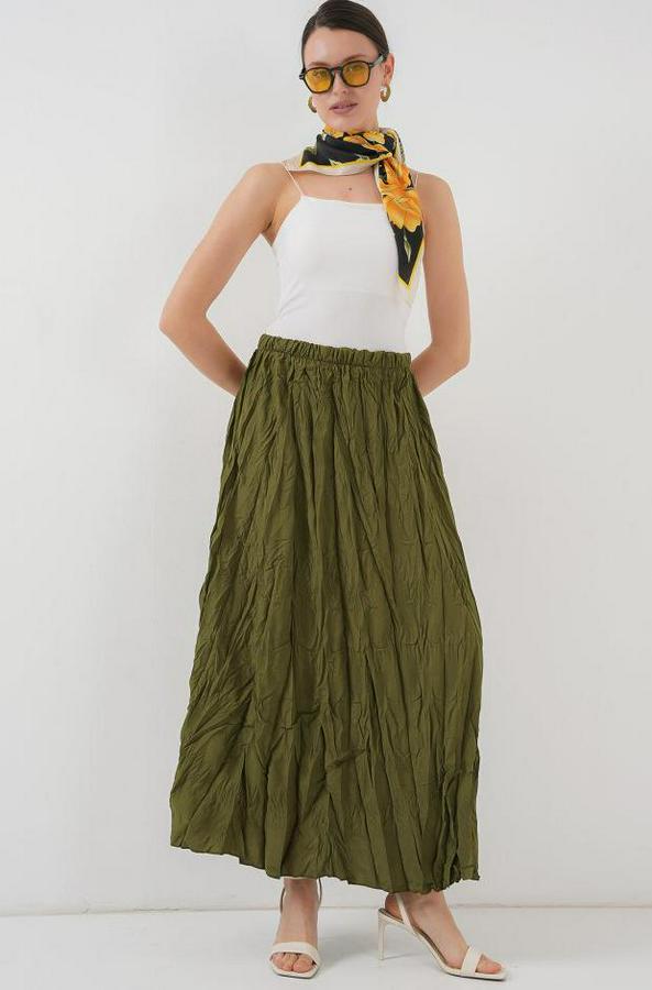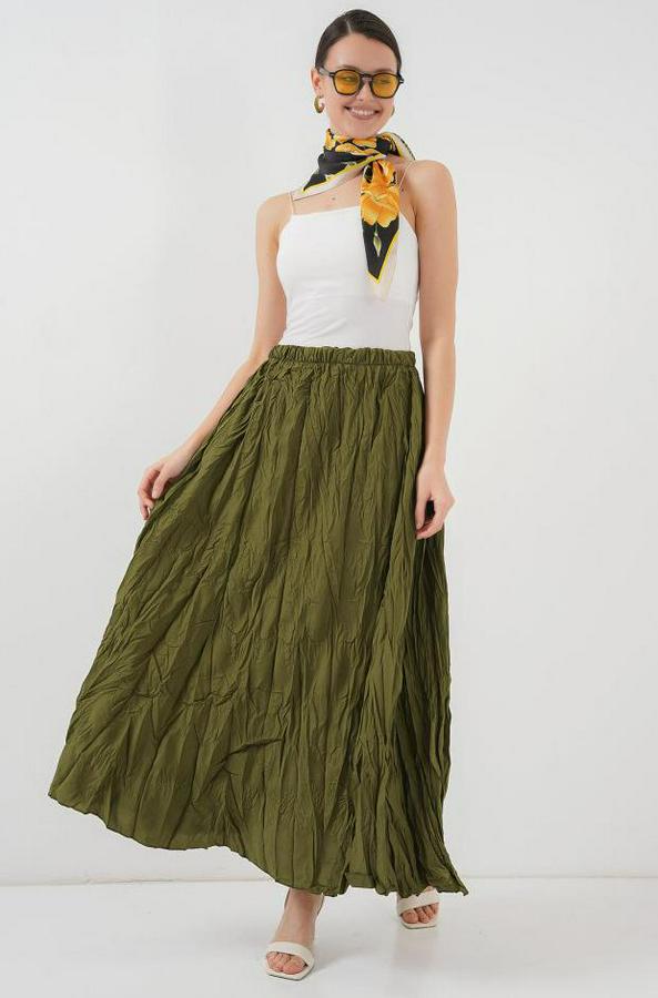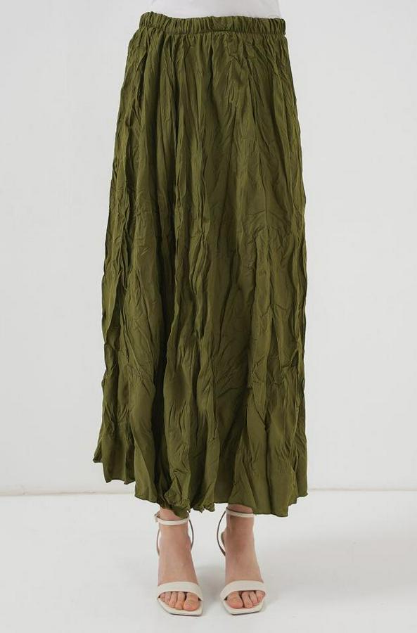 Uzun Kırışık Etek 8042 - Haki