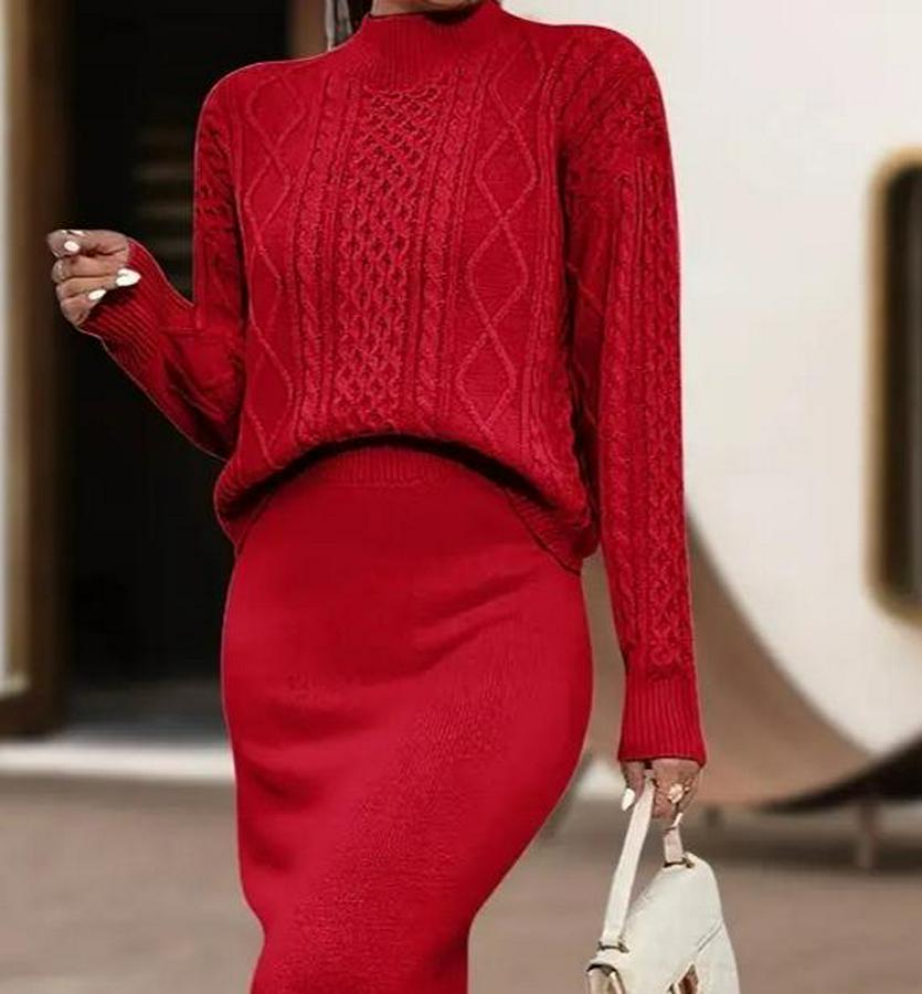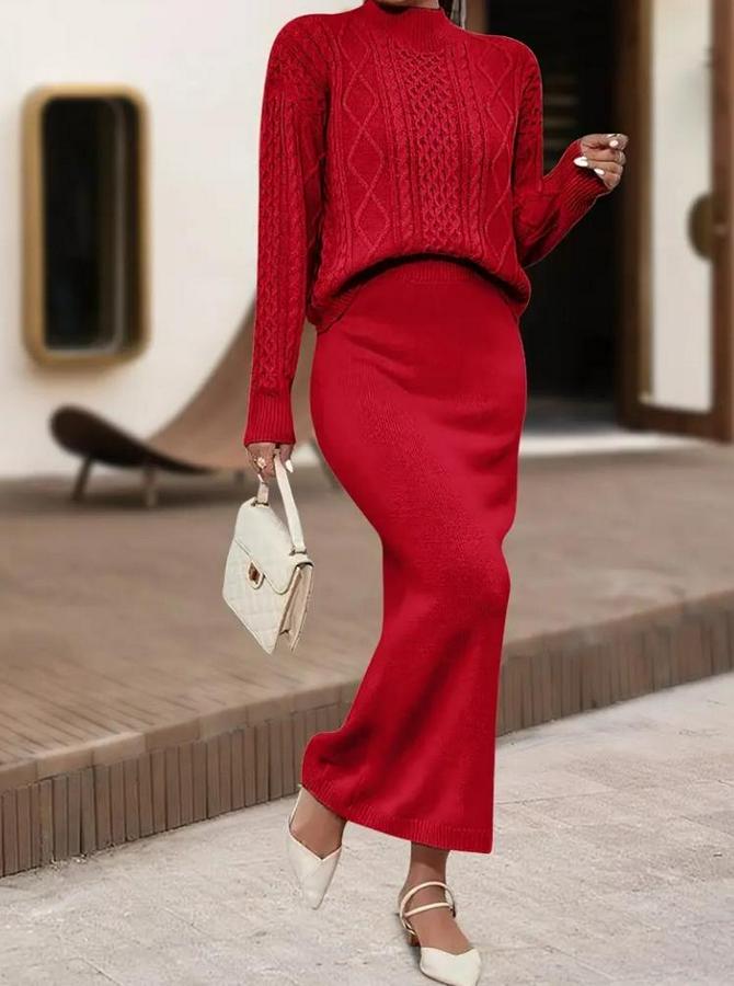 AnasayfaTüm ÜrünlerAlt GiyimEtekUzun Kollu Balıkçı Yaka Bluz Ve Etek Ikili Triko Takım
