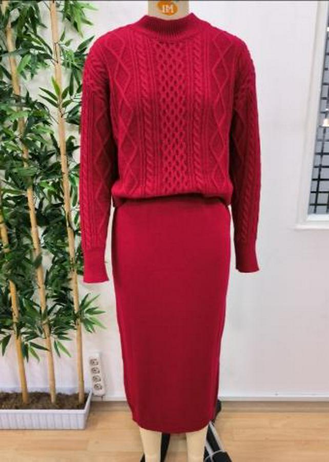 Uzun Kollu Balıkçı Yaka Bluz Ve Etek Ikili Triko Takım
