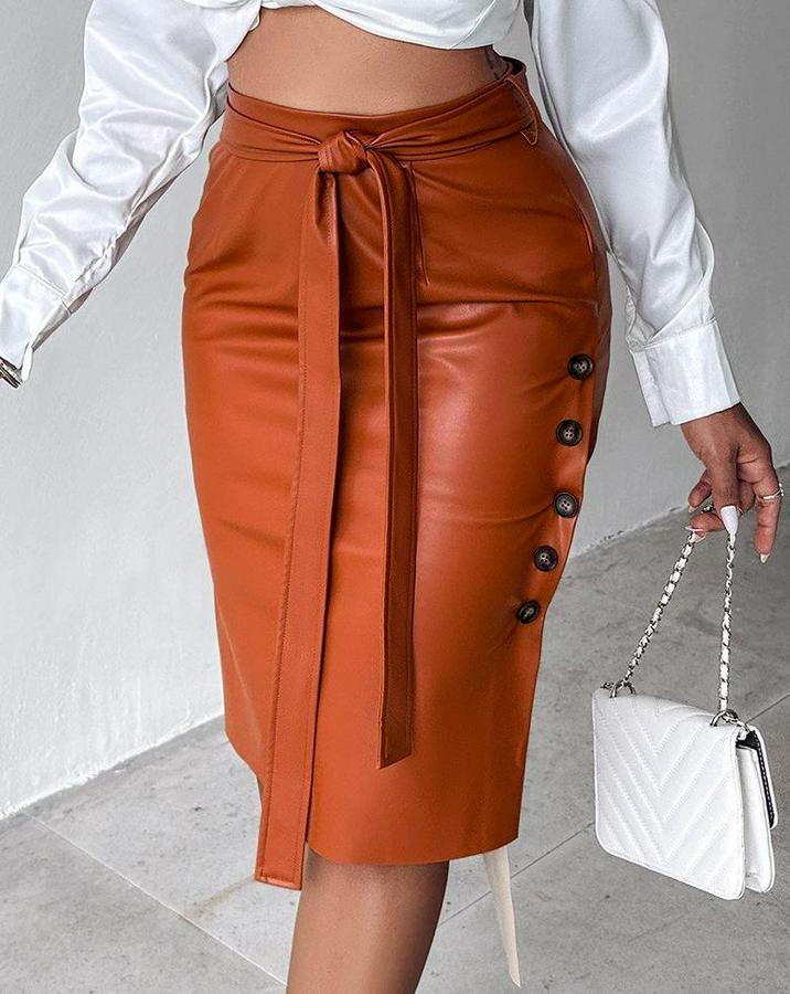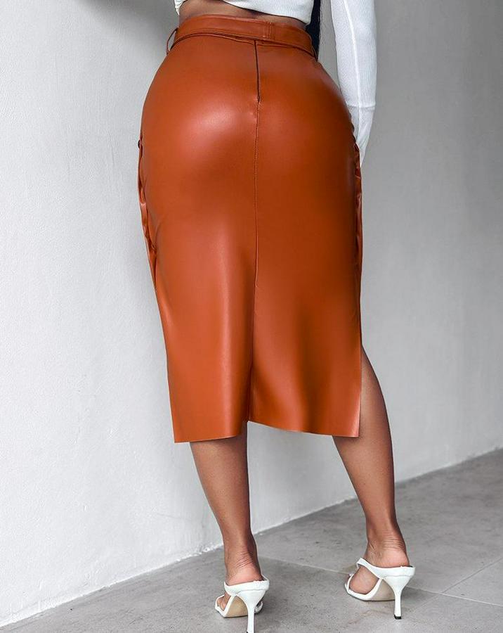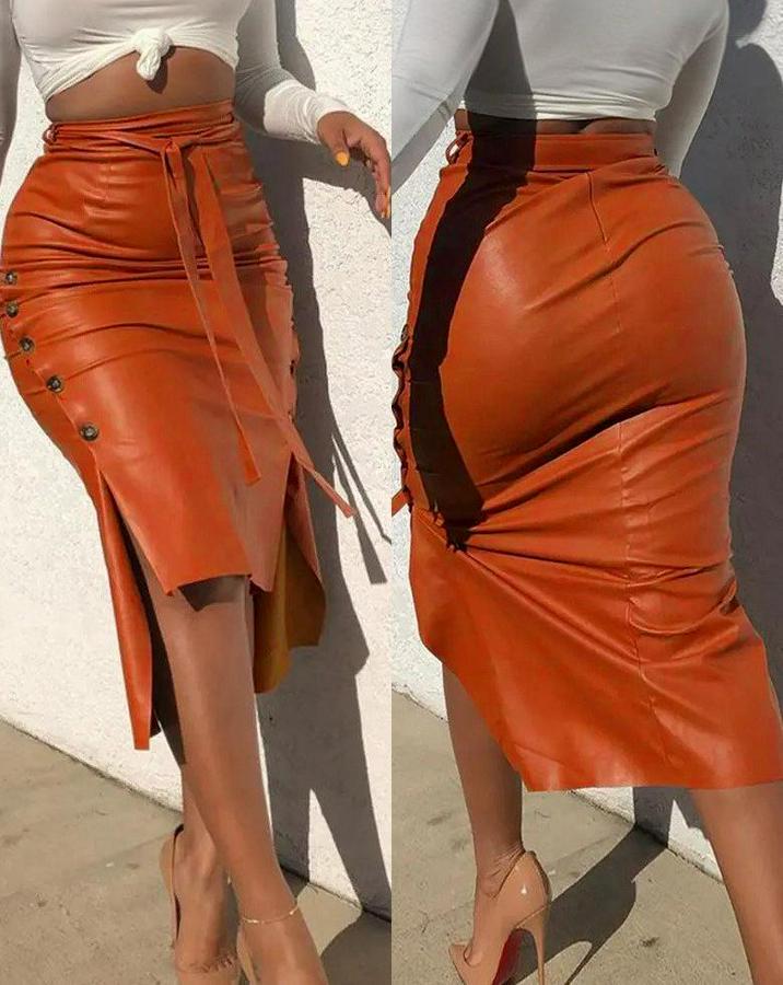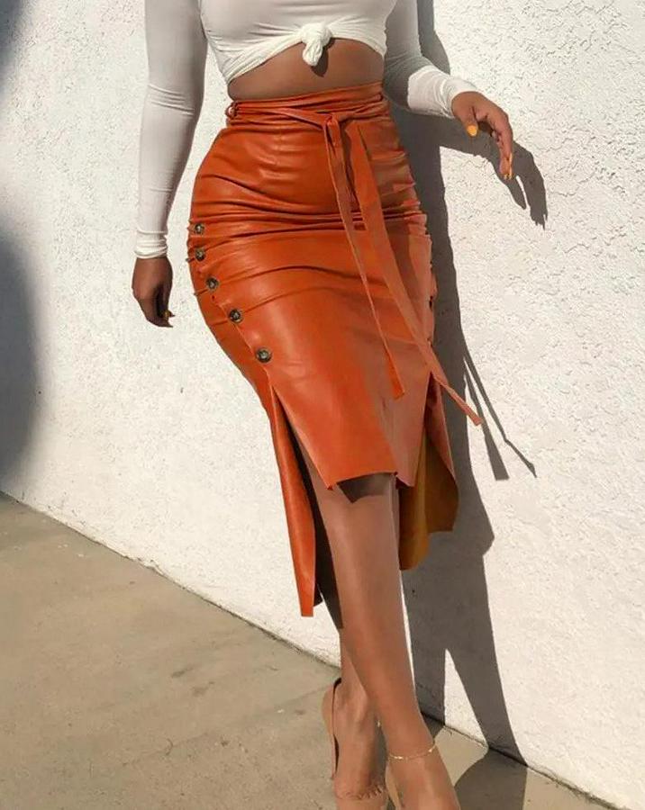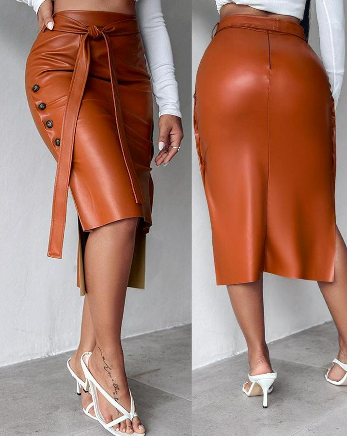 AnasayfaTüm ÜrünlerAlt GiyimEtekYüksek Bel Kuşaklı Yanlardan Düğmeli Mini Deri Etek