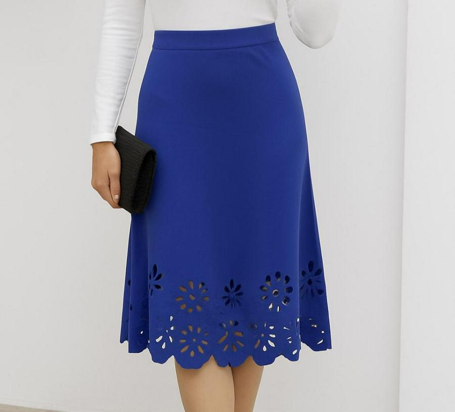 Kadın Yüksek Bel Lazer Kesim Detaylı Midi Ithal Krep Etek
