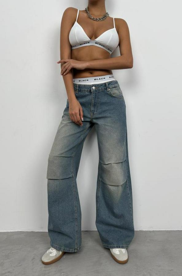 Düşük Bel Diz Katlı Jean