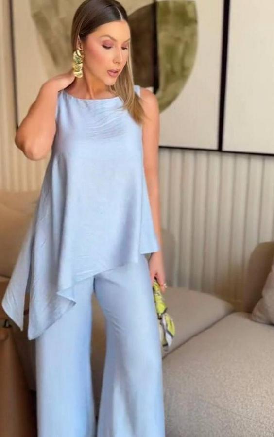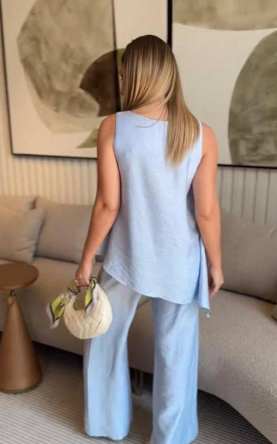 Asimetrik Bluz & Pantolon İkili Takım