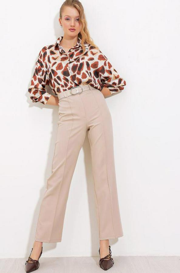 AnasayfaTüm ÜrünlerAlt GiyimPantolonBej Yüksek Bel Kumaş Pantolon 6584