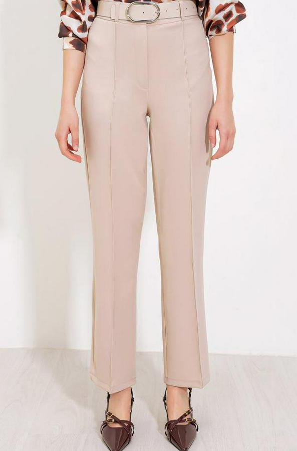 Bej Yüksek Bel Kumaş Pantolon 6584