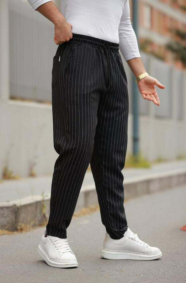 Erkek Beli Bağcıklı çizgili Pantolon