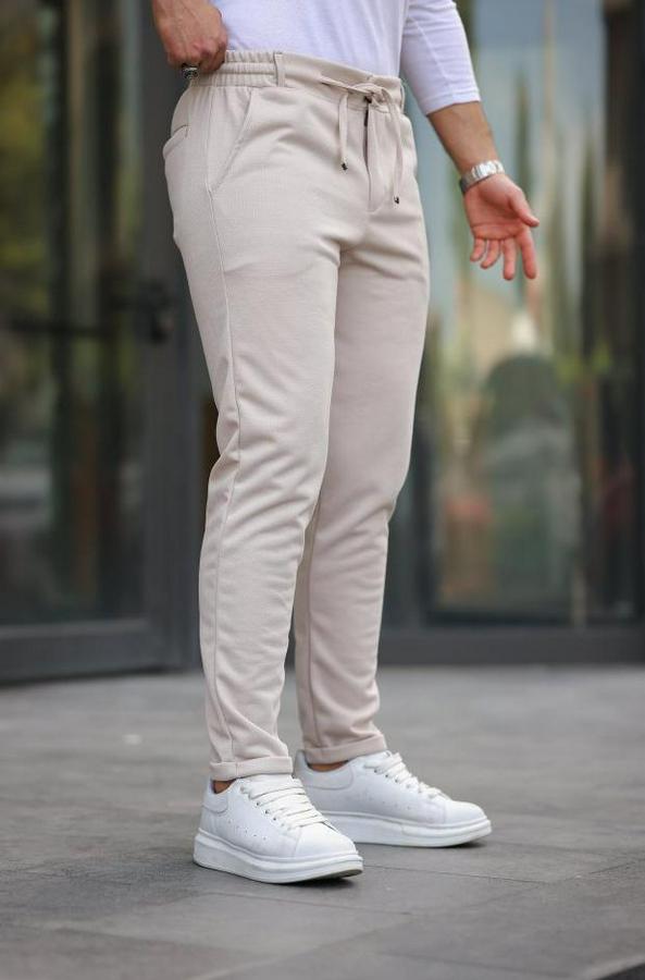 Erkek Beli Bağcıklı Duble Paça örme Pamuklu Kumaş Jogger Pantolon