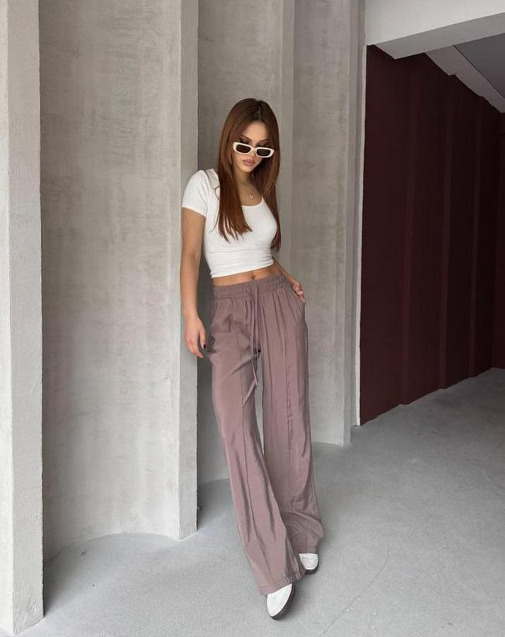 Beli Lastikli Çımalı Tensel Kumaş Ispanyol Paça Pantolon