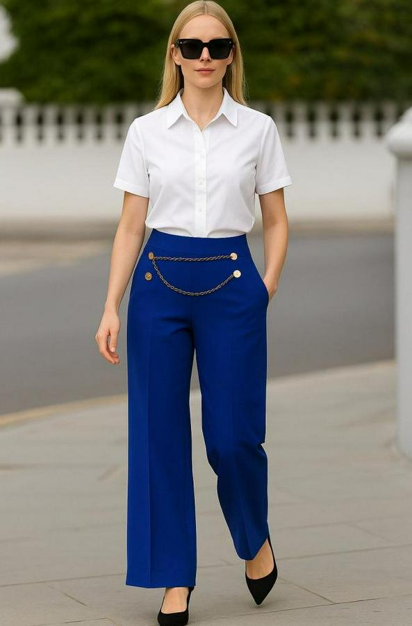 Kadın Beli Zincir Detay Ithal Krep Pantolon