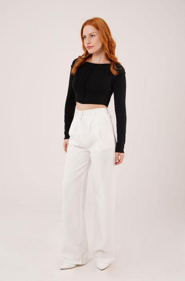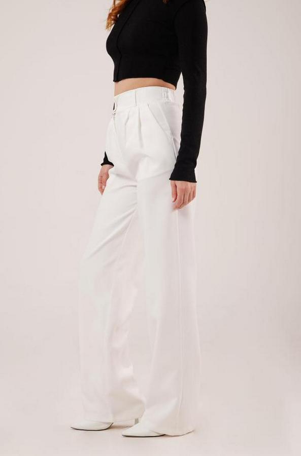 AnasayfaTüm ÜrünlerAlt GiyimPantolonBol Paça Piliseli Beyaz Pantolon