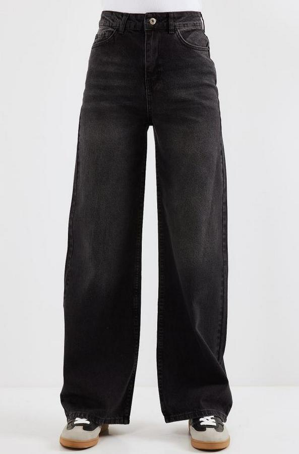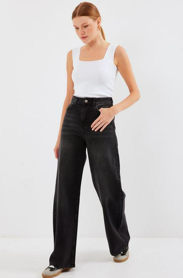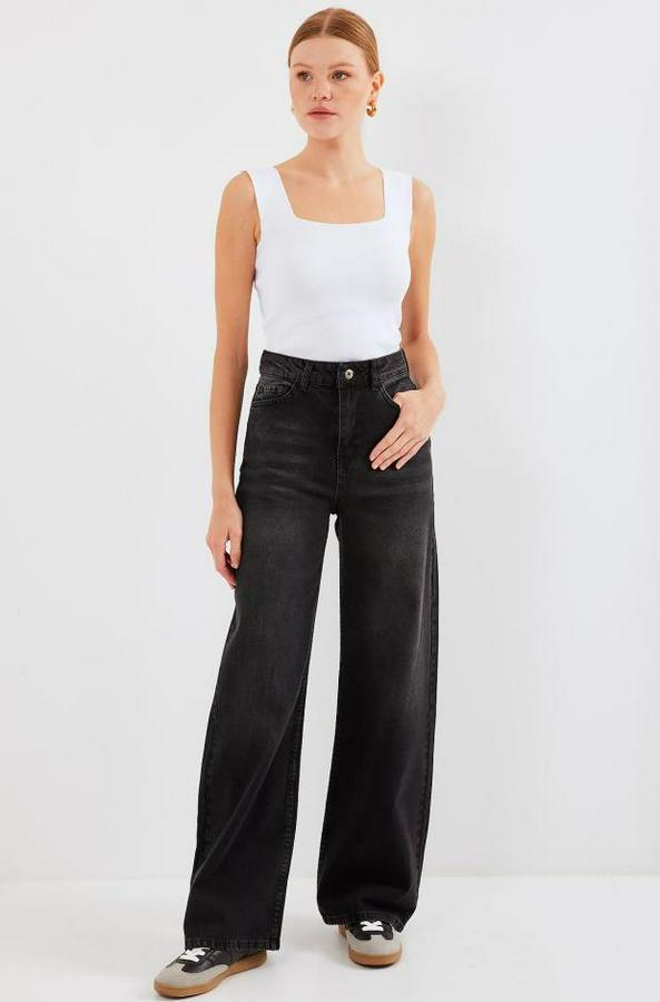 6702 Bol Paça Yüksek Bel Palazzo Kot Pantolon - Siyah