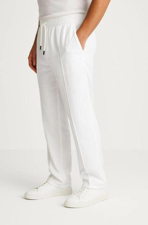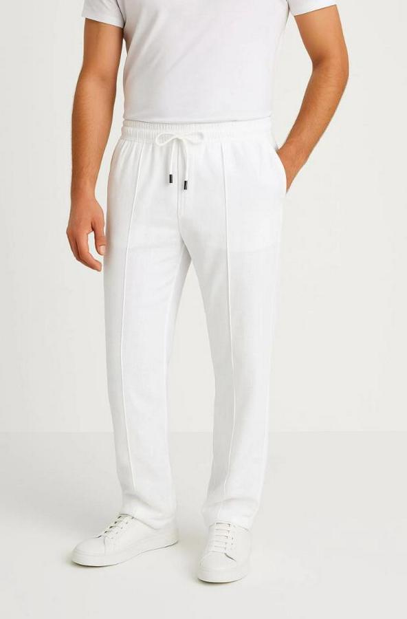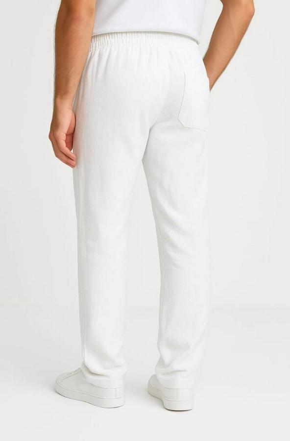 Erkek Keten Pantolon – Cepli, Beli Lastikli Ve Bağcıklı, Nefes Alan Rahat Kalıp, Yazlık Ve Baharlık Günlük Giyim, Şık & Konforlu Boru Paça Model - Beyaz