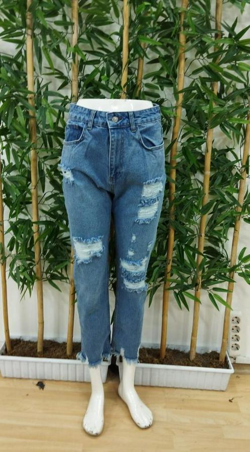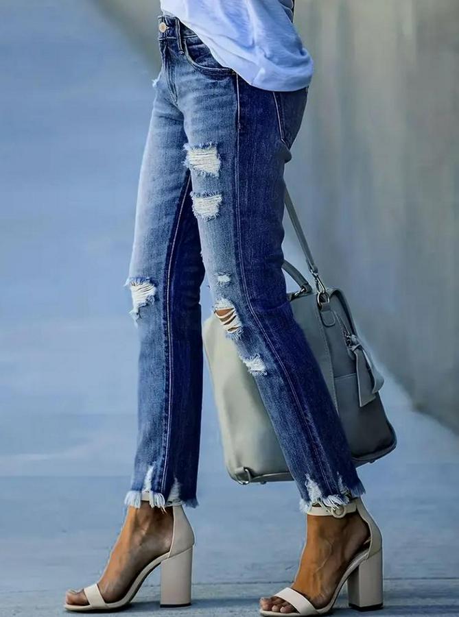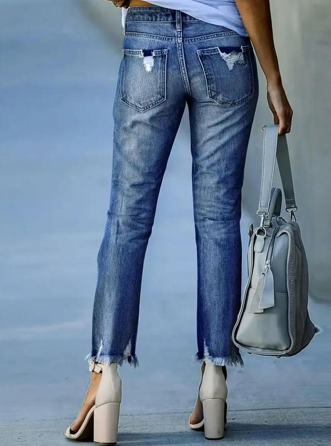 Kadın Dar Kesim Cepli önden Yırtık Desenli Denim Pantolon