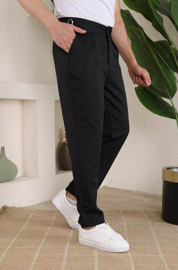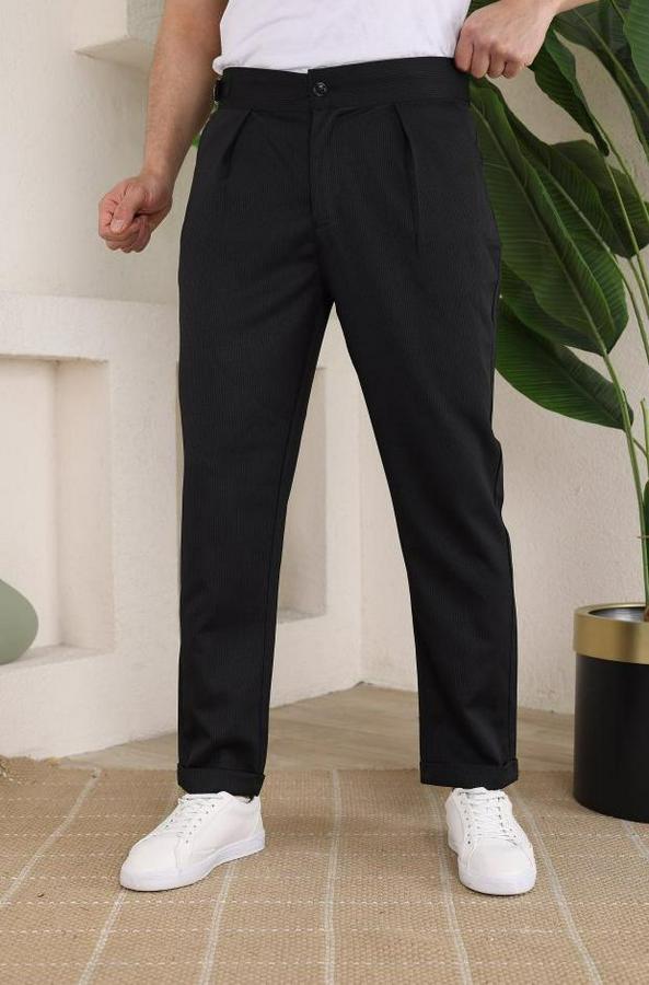 Erkek Duble Paça Yandan Tokalı Cord Desenli Old Money Pantolon