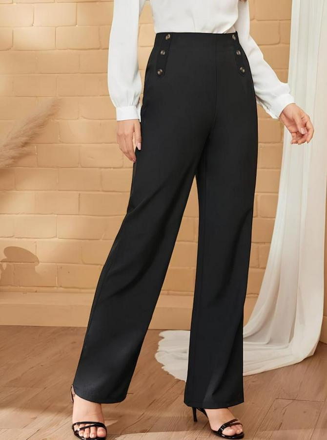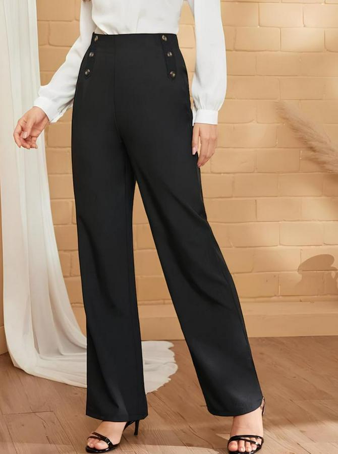 AnasayfaTüm ÜrünlerAlt GiyimPantolonDüğme Detay Bol Paça Ithal Krep Pantolon