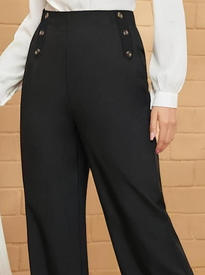 Kadın Düğme Detay Bol Paça Ithal Krep Pantolon