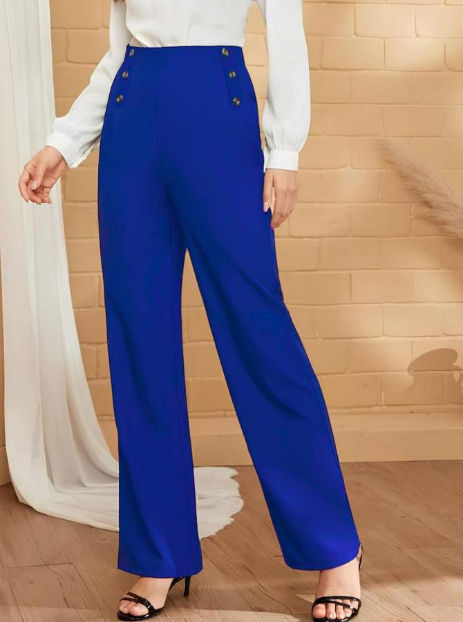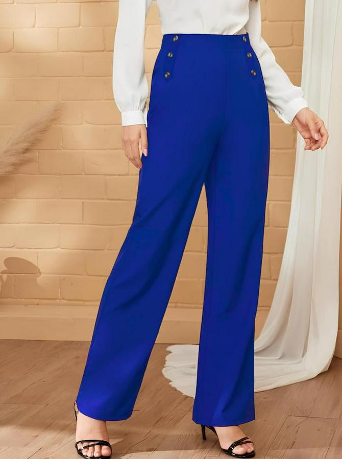 Kadın Düğme Detay Bol Paça Ithal Krep Pantolon