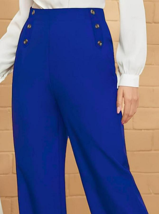 Düğme Detay Bol Paça Ithal Krep Pantolon