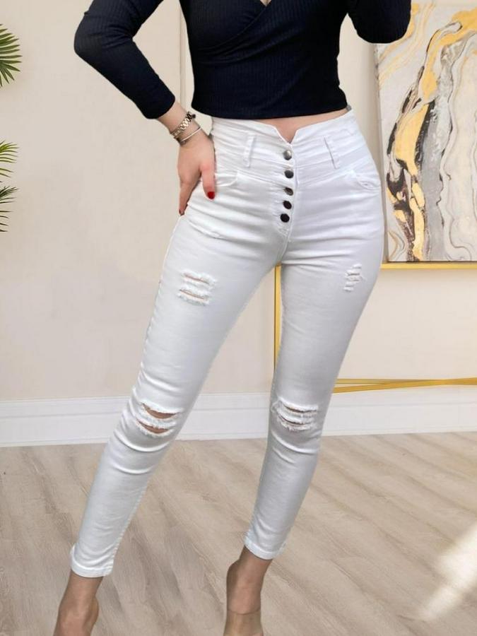 AnasayfaTüm ÜrünlerAlt GiyimPantolonDüğmeli V Detay Bel Yırtık Kot