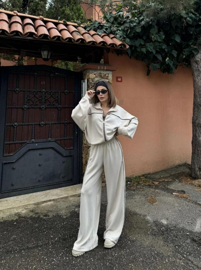 Fermuarlı Eşofman Pantolon İkili Takım - Beyaz