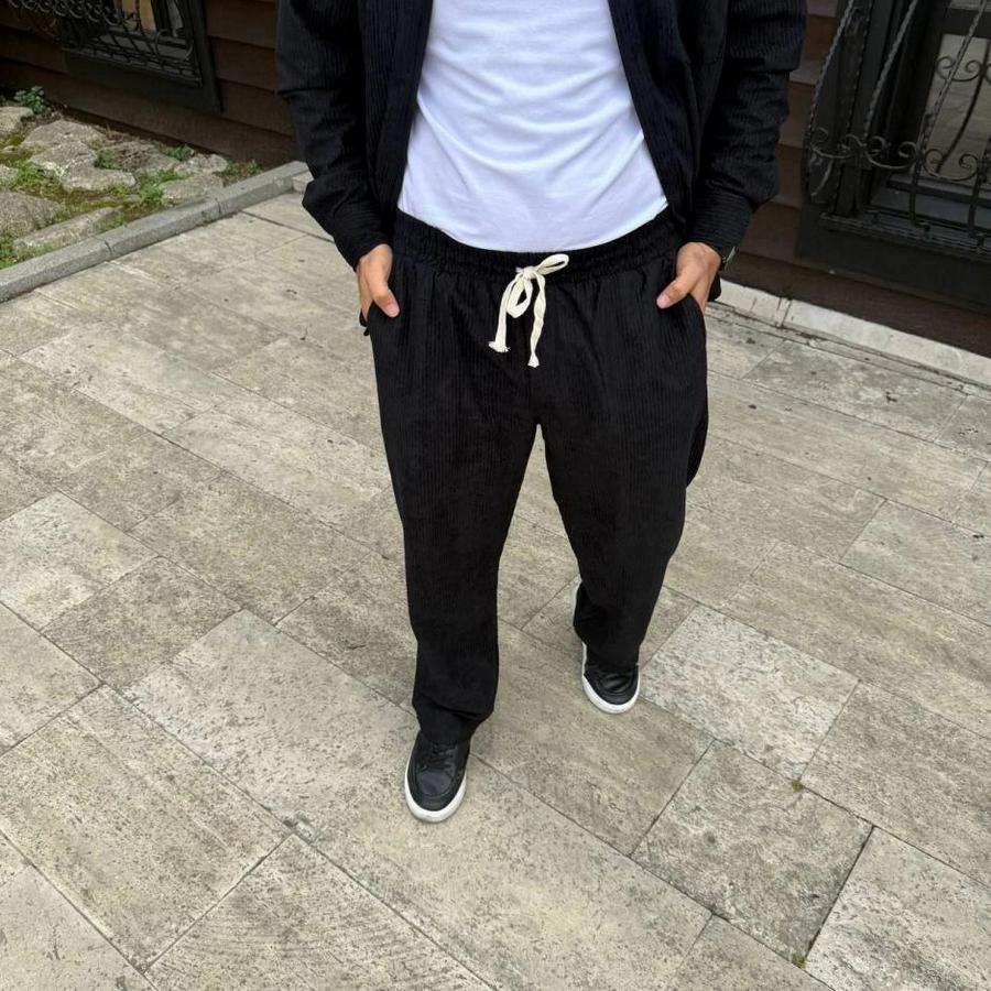 Erkek Fitilli Kadife Cepli Buggy Pantolon Oversize Rahat Kalıp - Siyah
