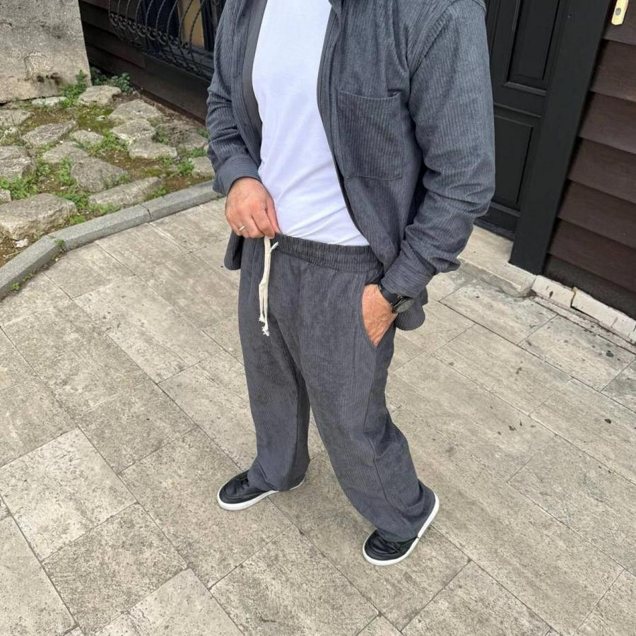 Erkek Fitilli Kadife Cepli Buggy Pantolon Oversize Rahat Kalıp - Füme