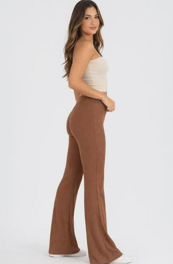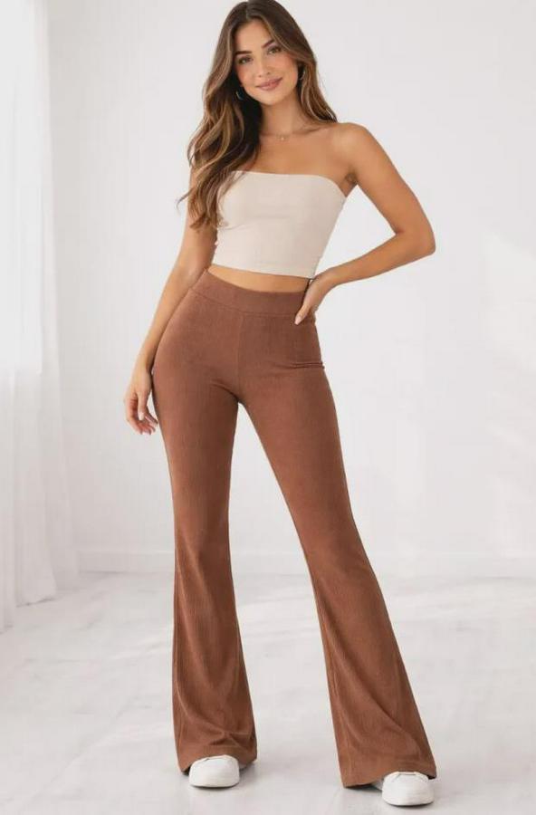 Fitilli Kaşkorse İspanyol Paça Tayt Yüksek Bel Esnek Günlük Rahat Pantolon - Kahverengi