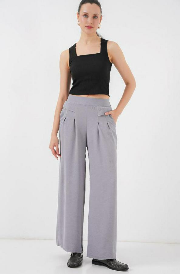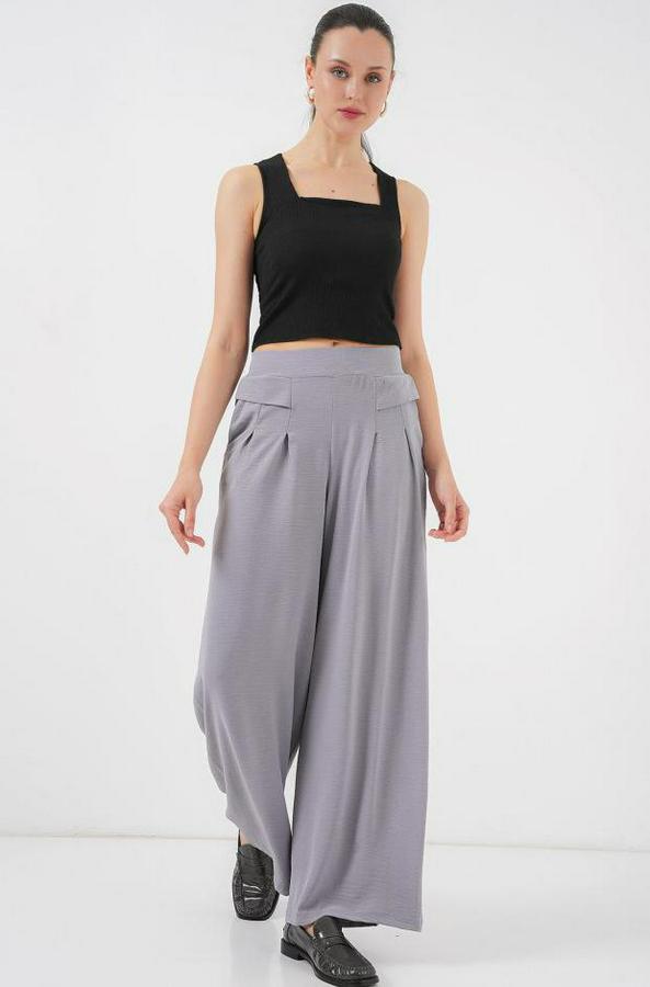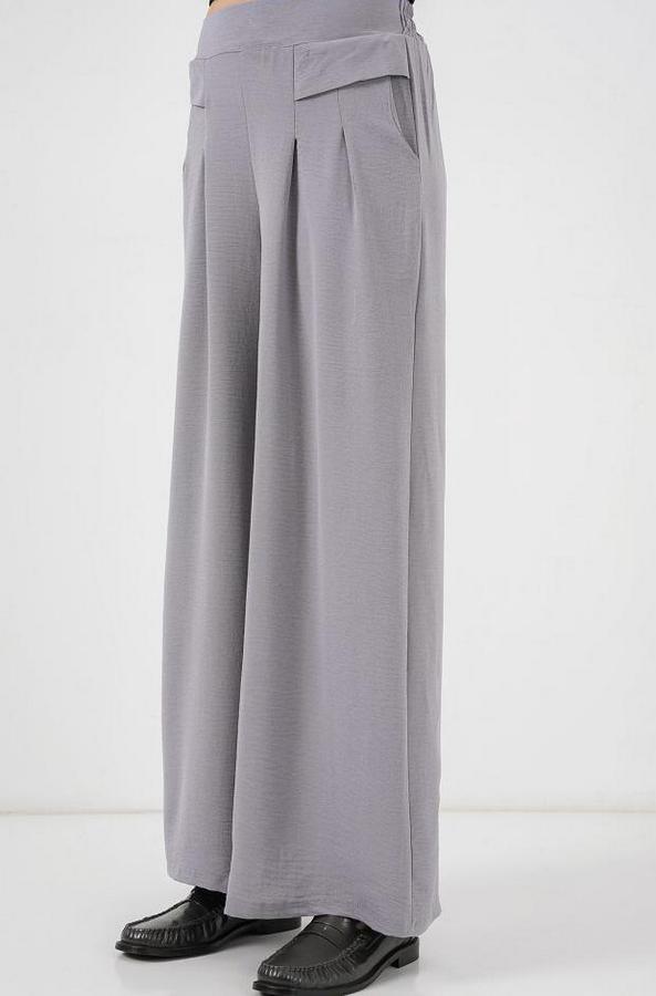 Geniş Paça Pileli Pantolon 6718 - Gri